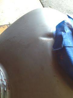 Next i tried McGuires Rubbing compound & buffing wheel on drill -- that took some off.
